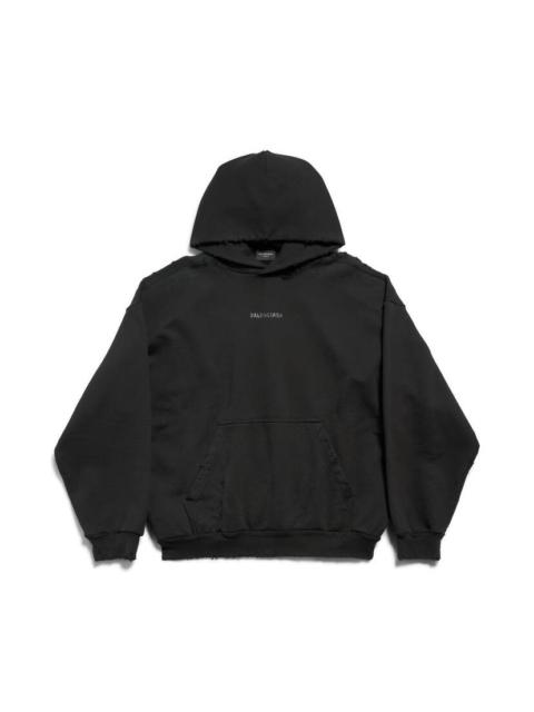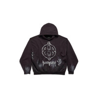 Metal BB Stencil Hoodie Medium Fit in black and white archetype fleece PRODUCT DETAILS • Archetype fleece • This item is unisex • Hood without drawstring • Dropped shoulders • 1 kangaroo pocket on front • Gathered at cuffs and waistline • Metal BB Stencil artwork printed at front • Crinkled and dirty effect • Made in Portugal Material: 100% cotton