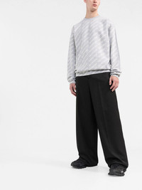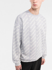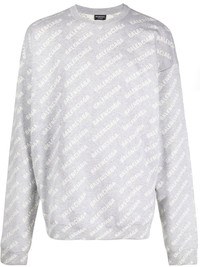 intarsia-logo crew-neck jumper Spun from a blend of cotton and virgin wool, Balenciaga's crew-neck jumper is decorated with an intarsia-knit logo all over in light grey and white tones. Highlights - Grey/white - Cotton-wool blend - Intarsia-knit logo - Crew neck - Long sleeves - Ribbed cuffs - Ribbed hem Made in Italy Composition Outer: Spandex/Elastane 1% SIZE & FIT Model measurements Height 6 ft 2 in(1.88 m) Bust/Chest 37.79 in(96 cm) Hips 38.58 in(98 cm) Waist 29.52 in(75 cm) FittingInformation Designed to be unstructured, offering a loose fit throughout Made from a midweight non-stretch fabric, this piece offers minimal elasticity when worn This piece fits true to size – take your usual size Measurement CHEST 50 in(127 cm) SLEEVE LENGTH 25 in(63.5 cm) Shoulder Width 23.62 in(60 cm) LENGTH 27.16 in(69 cm) Washing instructions Dry Clean Only