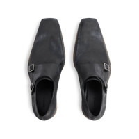 Monsieur Monk Derby in black worn-out calfskin is in several looks of Balenciaga Winter 25 Collection. PRODUCT DETAILS • Calfskin • Monk derby • 30mm arch • Worn-out effect on the sole and on the upper • Elongated and square toe • Two buckles on the upper • Balenciaga logo engraved on each buckle • Made in Italy Upper: calfskin - Sole: calfskin - Insole: calfskin