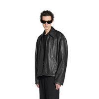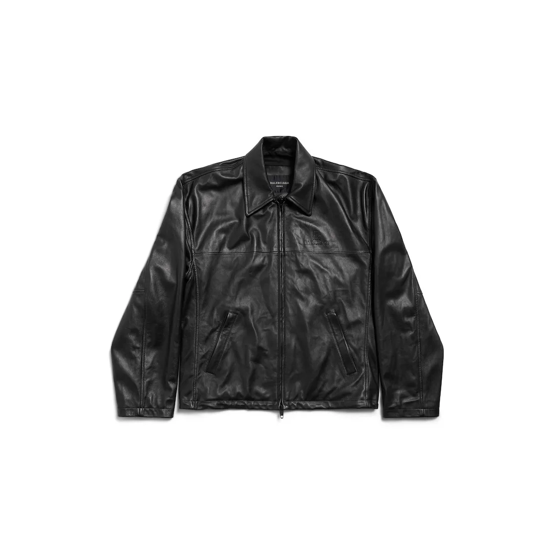 Nano BB Zip-Up Jacket in black super soft leather for Men is from look 20 of Balenciaga Fall 25 Collection. PRODUCT DETAILS • Super soft lambskin • Flat collar • Double-ended zip fastening • Long sleeves • 2 slash pockets • Drawstring at bottom • Nano BB artwork at chest • Made in Italy Main material: 100% lambskin