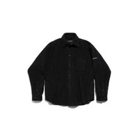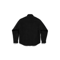 Overshirt in black brushed fleece PRODUCT DETAILS • Polyester brushed fleece • Button-down collar • 7 snap button front • 1 patch pocket at chest • Long sleeves • Buttoned cuffs • Rounded hem • Balenciaga patch on the sleeve • Made in Italy Main material: 100% polyester