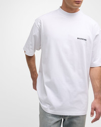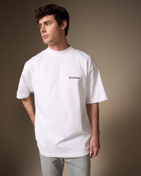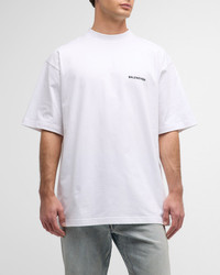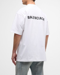- Balenciaga oversized T-shirt - Crew neckline - Embroidered logo at chest - Logo print at back - Short sleeves - Pullover style - Cotton - Made in Portugal - Model is 6'1"/185cm.