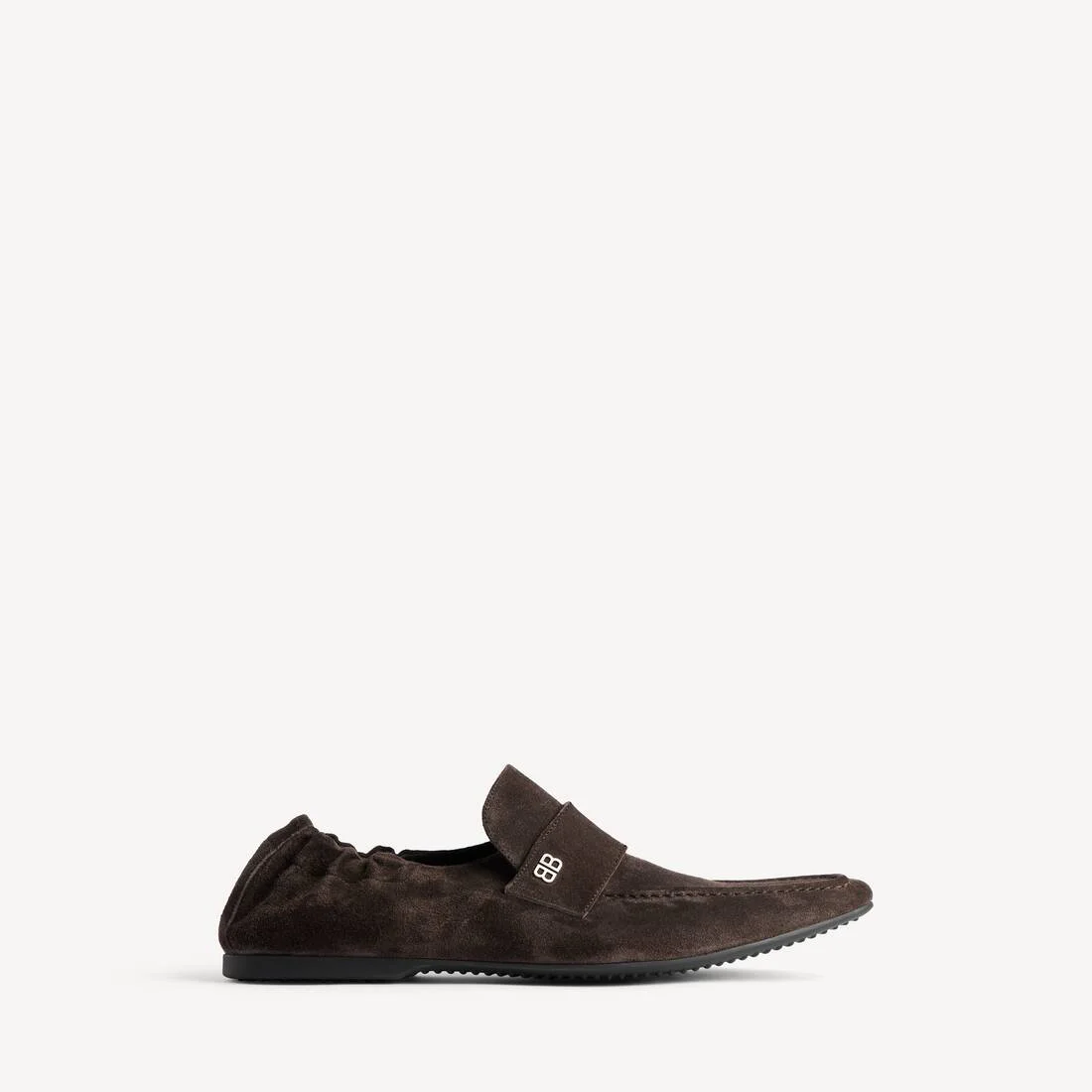 Palermo BB Loafer in brown suede calfskin PRODUCT DETAILS • Suede calfskin • Loafer • Elongated and square toe • Elasticated at back • Metallic BB logo on the upper • Rubber sole • Made in Italy Upper: calfskin - Sole: TPU - Insole: calfskin