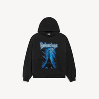 Paris Thunderstorm Hoodie Medium Fit in black dry fleece PRODUCT DETAILS • Dry fleece • Worn-out details • Hood without drawstring • Dropped shoulders • 1 kangaroo pocket on front • Gathered at cuffs and waistline • Paris thundersorm artwork printed on the front • Made in Portugal Main material: 100% cotton