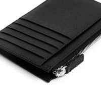 Passport Long Coin And Card Holder in black semi matte soft textured calfskin PRODUCT DETAILS • Dimensions: L5,1 x H3,5 x W0,4 inch • Semi matte soft textured calfskin • Long coin and card holder • Balenciaga logo debossed at front • Aged-silver hardware • 1 zipped coin pouch • 1 receipt compartment • 5 card slots • Made in Italy Material: calfskin