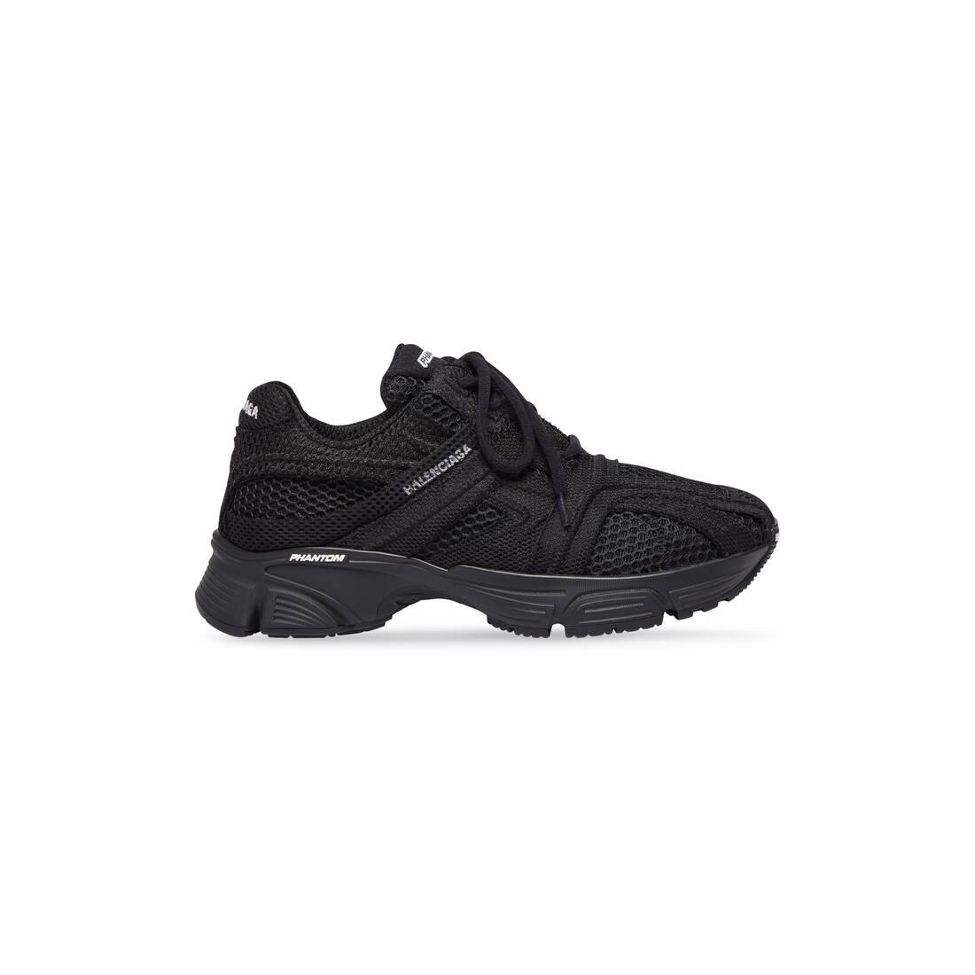 Phantom Sneaker in black monocolor fabric and mesh PRODUCT DETAILS • Leather free • Sneaker • Monocolor fabric and mesh • Debossed size at the edge of the toe • Phantom logo attached to the shoe tongue • Balenciaga logo printed on exterior • Balenciaga logo on front outsole • Phantom logo on exterior sole • Balenciaga logo embroidered at the back of the heel • Made in Italy • Wipe with a soft cloth Material: 100% polyester
