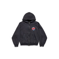 Planet Earth Zip-Up Hoodie Regular Fit wash black archetype fleece PRODUCT DETAILS • Archetype fleece • This item is unisex • Hood without drawstring • Dropped shoulders • Double-ended zip fastening • 2 pockets at front • Gathered at cuffs and waistline • Worn-out details • Planet earth artwork printed at front and back • Made in Portugal Main material: 100% cotton