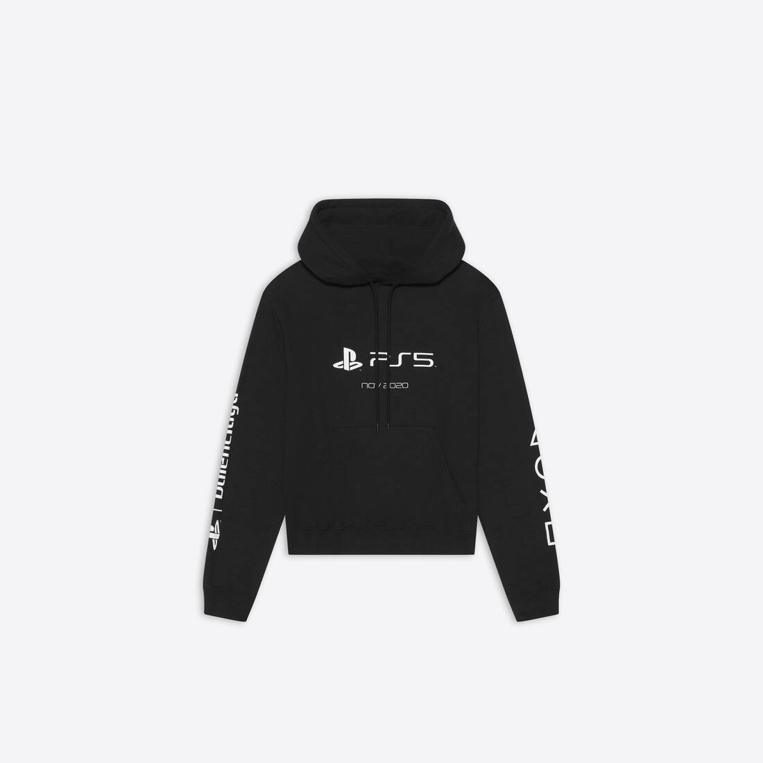PlayStation™ Fitted Hoodie in black and white medium fleece PRODUCT DETAILS • Organic medium fleece • Small fit • Hood with drawstring • 1 kangaroo pocket at front • Gathered cuffs • PlayStation™ artwork printed at front and back • PlayStation™ artwork printed on each sleeve • Made in Portugal • Cold machine wash • Model is 187 cm / 6'2'' and is wearing a FR size S Our approach: We are committed to the sustainable and ethical management of our operations. The goal of reducing our environmental impact influences our decisions. At all levels and in all locales—whether at offices and stores or along the supply chain—we respect high standards for social and ecological responsibility. Balenciaga is also fur- and exotic leather-free. Material: 100% cotton
