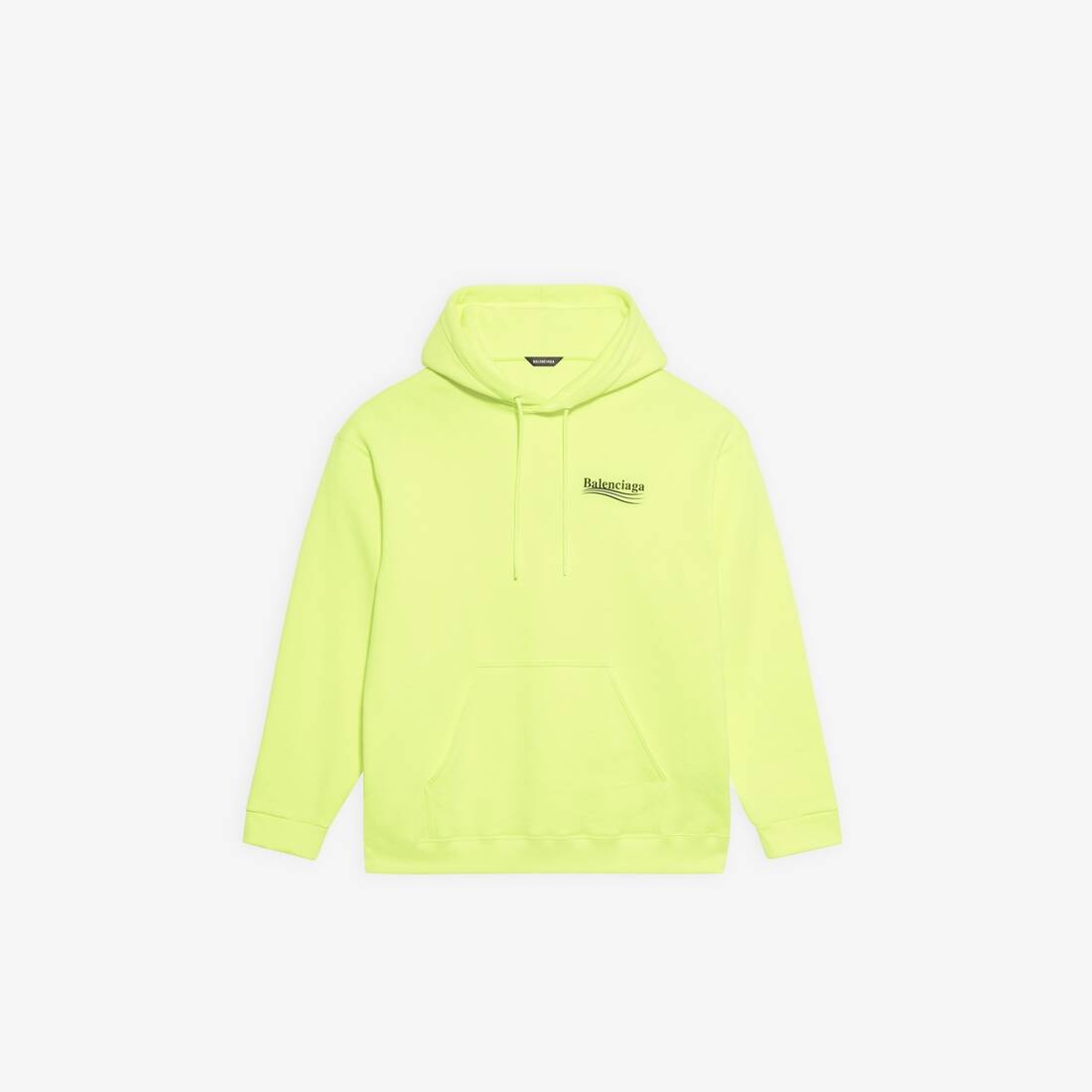 Men's Political Campaign Medium Fit Hoodie in Fluo Yellow/black