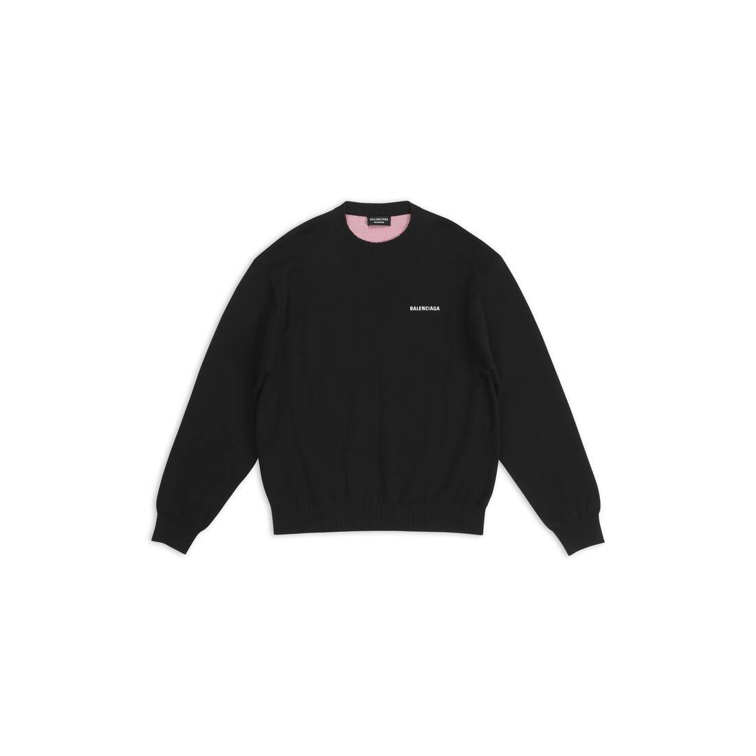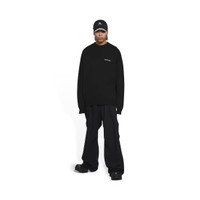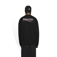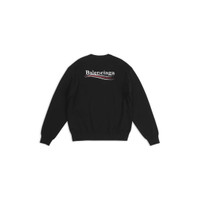 Political Campaign Sweater in black mix cotton knit PRODUCT DETAILS • Mix cotton knit • Large fit • Crewneck • Dropped shoulder • Ribbed finishing at collar, cuffs and bottom • Balenciaga logo embroidered at front • Political Campaign artwork jacquard at back • Made in Italy • Dry cleaning • Model is 184 cm / 6'03'' and is wearing a FR size S Material: 51% cotton, 49% viscose