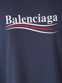 SKU: 553-003969 01 BRAND ID: 641675 TNVG5 T-Shirt by Balenciaga • Oversized fit • Micro cotton knit • Embroidered logo on the front • Design with unstitched seams • Rounded collar • Short sleeve Made in Italia Back length: 74 cm