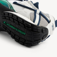 Radar Gradient Lines Sneaker in light grey, green and black polyurethane and recycled polyester PRODUCT DETAILS • Leather free • Sneaker • Polyurethane and polyester • Worn-out effect • Debossed and printed Balenciaga logo on the toe • Debossed and printed 3B sport icon artwork on the upper • Loop sports icon artwork embossed on the outsole • Balenciaga logo on the tongue • Written size at the back of the heel • Lacing system featuring 13 fabric eyelets • Double lacing system featuring a functional lace and a decorative lace • Slim and light outsole • Back pull-on tab • Made in China Upper: polyurethane, polyester - Sole: rubber - Insole: foam