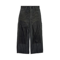 Ripped Off Baggy Pants in black cotton denim for Men are from look 30 of Balenciaga Fall 25 Collection. PRODUCT DETAILS • Cotton denim • Covered zip fly • 5 belt loops • 5 pockets • Yokes with rivets at front • Ripped at back • Balenciaga engraved flex buttons • Jacron at back • Made in Italy Main material: 100% cotton