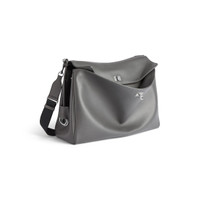 Rodeo Messenger Bag Medium in grey smooth calfskin, aged-silver hardware PRODUCT DETAILS • Smooth calfskin • Messenger bag • Adjustable and removable strap with shoulder pad • Crossbody and shoulder carry • Removable cloche cles with two split rings • Aged-silver hardware • Wide front pocket • Turn lock closure • 1 main compartment • 1 inner zipped pocket • 2 flat pockets at back • Side snaps • 4 brass feet • Nappa lambskin lining • Made in Italy Material: calfskin, polyester