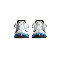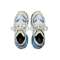 Runner 2.0 Sneaker in white, yellow and blue mesh and polyurethane PRODUCT DETAILS • Leather free • Sneaker • Mesh and polyurethane • Worn-out effect • Printed size at the edge of the toe • Debossed size at back • Runner logo printed on exterior • Balenciaga logo debossed on the tongue • Balenciaga logo at the back of the heel • Back pull-on tab • Made in China • Wipe with a soft cloth Material: 65% polyurethane, 35% polyester
