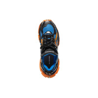 Runner Sneaker in blue, orange, black and white mesh and nylon PRODUCT DETAILS • Leather free • Sneaker • Mesh and nylon • Worn-out effect • Printed size at the edge of the toe • Embossed size at back • Runner logo printed on exterior • Balenciaga logo embroidered on the tongue • Balenciaga logo at the back of the heel • Back pull-on tab • Made in China • Wipe with a soft cloth Material: 65% polyurethane, 35% polyester