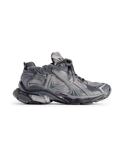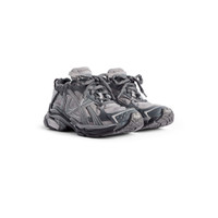 Runner Sneaker in grey suede cowskin, polyurethane and polyester PRODUCT DETAILS • Sneaker • Cowskin, polyurethane and polyester • Worn-out effect • Printed size at the edge of the toe • Debossed size at back • Runner logo printed on exterior • Balenciaga logo embroidered on the tongue • Balenciaga logo at the back of the heel • Back pull-on tab • Made in China Upper: cowskin, polyurethane, polyester - Sole: rubber, TPU, EVA, polyurethane - Insole: foam