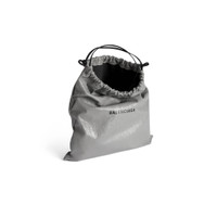 Shopper Dust Bag Pouch in Balenciaga grey Arena lambskin is from look 26 of Balenciaga Spring 26 Collection. PRODUCT DETAILS • Arena lambskin • Dust bag shape • Adjustable handle strap • Balenciaga logo printed at front • Drawstring closure • 1 main compartment • Polyamide lining • Made in Italy Material: lambskin