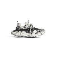 3XL Ski Sneaker in white and black mesh and polyurethane PRODUCT DETAILS • Leather free • Sneaker • Mesh and polyurethane • Worn-out effect • Water resistant • Removable footwear chains • Balenciaga logo at the edge of the toe and at back • Embossed size on the upper and at the back of the heel • 3XL rubber branding on the tongue with reflective detail • Back and tongue pull-on tab with reflective detail • Fleece lining • Made in China • Wipe with a soft cloth • Material: 55% polyurethane, 45% polyester