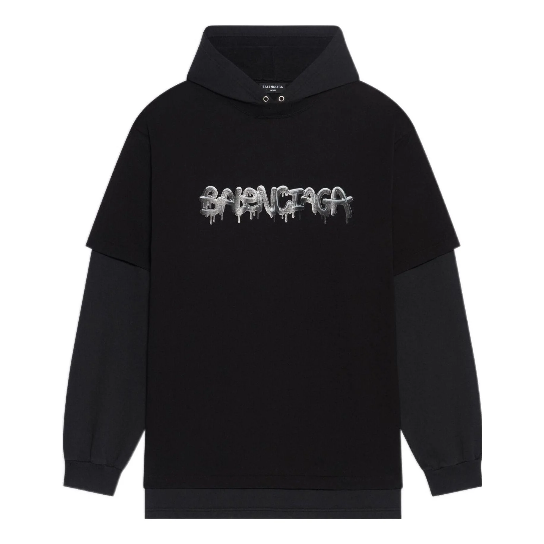 Slime Double Long Sleeve Hooded T-Shirt in black vintage jersey and black medium fleece PRODUCT DETAILS • Vintage jersey and Medium fleece • Unifit • Large fit • 2 fabric panels assembled together • Hood without drawstring • Long sleeves • Slime artwork printed at front • Made in Portugal • Cold machine wash • Model is 181 cm / 5'93'' and is wearing a FR size S Material: 100% cotton, 100% cotton