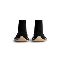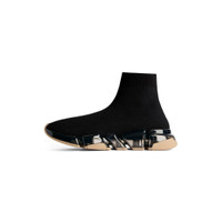 Speed 2.0 Full Clear Sole Sneaker in black and beige recycled knit PRODUCT DETAILS • Polyester and elastane • Ultra-articulated molded clear sole unit • “No Memory” sole technology bicolor sole unit • Extra light: nearly barefoot feel • Contrasted Balenciaga logo printed on exterior • Embossed Balenciaga logo on the back of sole • Made in Italy Upper: polyester, elastane - Sole: TPU - Insole: polyamide