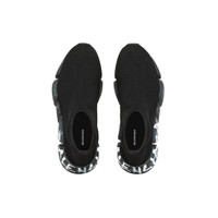 Speed 2.0 Graffiti Sneaker in black recycled knit and black sole unit PRODUCT DETAILS • Technical 3D knit • Ultra-articulated molded sole unit • "No Memory” sole technology monocolor sole unit • Extra light: nearly barefoot feel • Balenciaga Graffiti logo in color contrast on sole • Embossed logo on the back of sole • Worn-out effect on sole • Made in Italy • Do not machine wash and wipe with a soft cloth Material: 92% polyester, 8% elastane