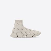 Speed 2.0 Sneaker in beige and black allover logo recycled knit PRODUCT DETAILS • Technical recycled knit • Ultra-articulated molded sole unit • "No Memory” sole technology monocolor sole unit • Extra light: 240g nearly barefoot feel • All over Balenciaga logo printed • Embossed logo on the back of sole • Made in Italy • Do not machine wash and wipe with a soft cloth Material: 92% polyester, 8% elastane