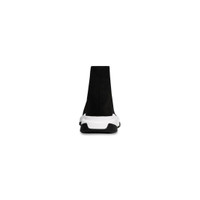 Speed Recycled Knit Sneaker in black knit, white and black sole unit PRODUCT DETAILS • Sock-like design • Technical 3D knit • White and black contrasted sole • Ultra-flexible molded sole • Ergonomic sole with "No Memory" technology • Extra light: nearly barefoot feel • White logo at side • Embossed logo on the back of the sole • Made in Italy • Wipe with a soft cloth Material: 92% polyester, 8% elastane