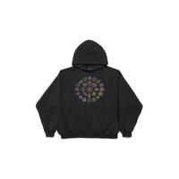 Spiral Crest Hoodie Medium Fit in faded black dry fleece PRODUCT DETAILS • Dry fleece • Hood without drawstring • Dropped shoulders • 1 kangaroo pocket on front • Gathered at cuffs and waistline • Spiral crest artwork printed at front and back • Made in Portugal Main material: 100% cotton