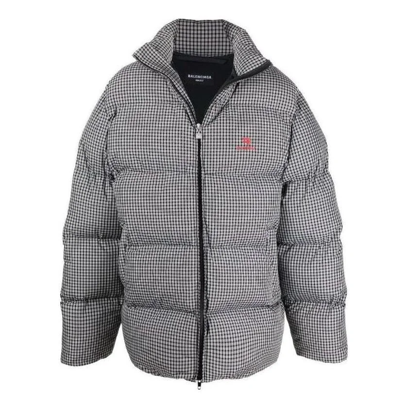 Sporty B Cosy Puffer in black and white light check outerwear PRODUCT DETAILS • Light check outerwear • Unifit • Cocoon volume • High stand up collar • Double-ended zip fastening • 2 slash pockets • Logo engraved on zip puller • Sporty B logo embroidered at chest • Made in Italy • Dry cleaning • Model is 181 cm / 5'93'' and is wearing a FR size 46 Material: 100% polyester