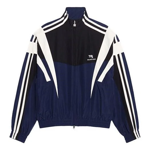 Sporty B Regular Tracksuit Jacket in dark blue nylon is from the look 20 of the Balenciaga’s Spring 22, Clones Collection. PRODUCT DETAILS • Nylon • Unifit • Regular fit • High neck • Contrasting yokes at front and sleeves • Double-ended zip fastening • 2 slash pockets • Elasticated waistline and cuffs • Logo engraved on zip puller • Sporty B artwork embroidered at chest • Made in Italy • Dry cleaning Material: 100% polyamide