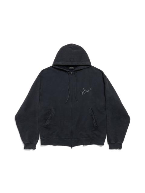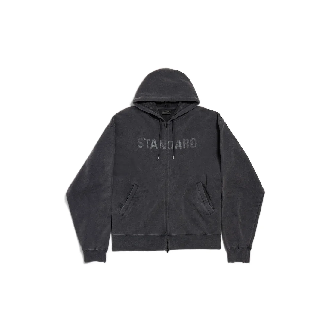Standard Oversized Zip-Up Hoodie in faded black dry fleece PRODUCT DETAILS • Dry fleece • Hood with drawstring • Dropped shoulders • Double-ended zip fastening • 2 front pockets • Elasticated cuffs and waistline • Standard artwork printed on front • Made in Portugal Main material: 100% cotton