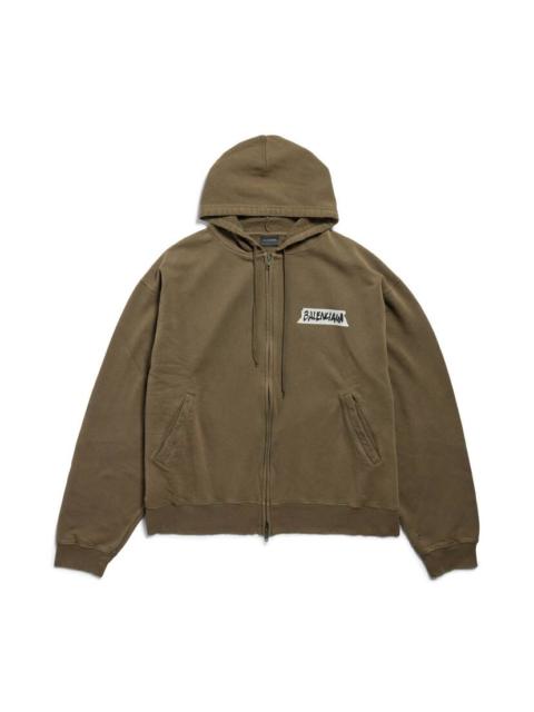 Men's Standard Oversized Zip-up Hoodie in Black Faded