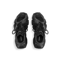 Stapler Sneaker in black polyurethane and polyester PRODUCT DETAILS • Leather free • Sneaker • Polyurethane and polyester • Worn-out effect • Staples all over the upper and sole • Asymmetrical lace-up fastening • Balenciaga logo debossed on the exterior • Stapler branding on the tongue • Shoe size embossed at toe • Unity sports icon artwork and Balenciaga logo debossed on the back of the heel • Tongue pull-on tab • Made in China Upper: polyurethane, polyester - Sole: rubber, EVA - Insole: foam