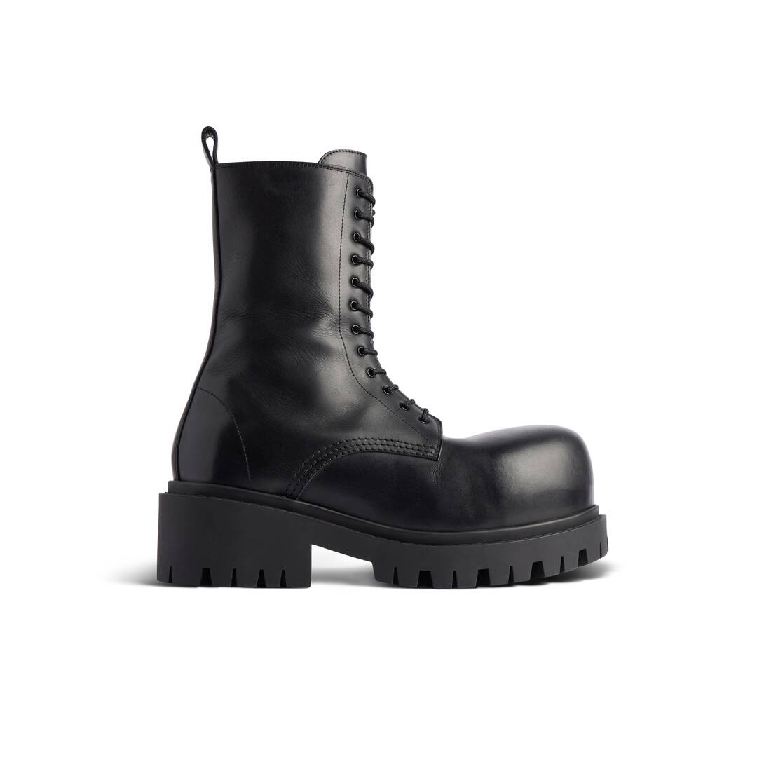 Stomper Bootie in black soft bullskin PRODUCT DETAILS • Soft bullskin • Boot • Extra round toe • Worn-out effect • Exaggerated proportions • Inner zipped closure • 12 eyelets lace-up vamp • Thick toothed rubber outsole • Made in Italy Upper: bullskin - Sole: EVA - Insole: calfskin