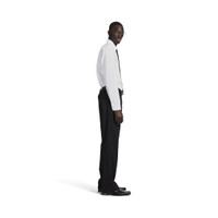 Straight Fit Tailored Pants in black stretch twill are from several looks of Balenciaga Winter 25 Collection. PRODUCT DETAILS • Stretch wool twill • Mid-waist • Covered zip fly • 5 belt loops • 2 slash pockets at front • 1 buttoned pocket at back • Creased leg • Made in Italy Main material: 98% wool, 2% elastane