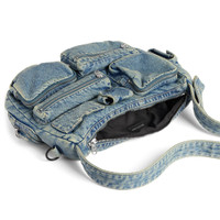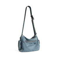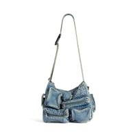 Superbusy Messenger Bag in vintage blue washed denim, aged-silver hardware PRODUCT DETAILS • Dimensions: L13 x H9,8 x W3,9 inch • Washed denim • Messenger bag • Adjustable shoulder strap (drop: 15,7 inch) • Balenciaga logo printed at front and back • Aged-silver hardware • Zipped closure • 1 main compartment • 4 zipped pockets at front • 1 EarPods case to fit AirPods Pro at front • 1 card holder at front • 1 flap pocket and 1 zipped pocket on sides • 1 zipped pocket at back • 2 D rings • BB logo engraved on zipper puller • Cotton canvas lining • Made in Italy Material: cotton