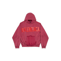 Tape Type Ripped Pocket Hoodie in raspberry dry fleece PRODUCT DETAILS • Dry fleece • Hood without drawstring • Dropped shoulders • Long sleeves • Ripped out pocket at front • Gathered at cuffs and waistline • Tape Type artwork at front and back • Made in Portugal Main material: 100% cotton