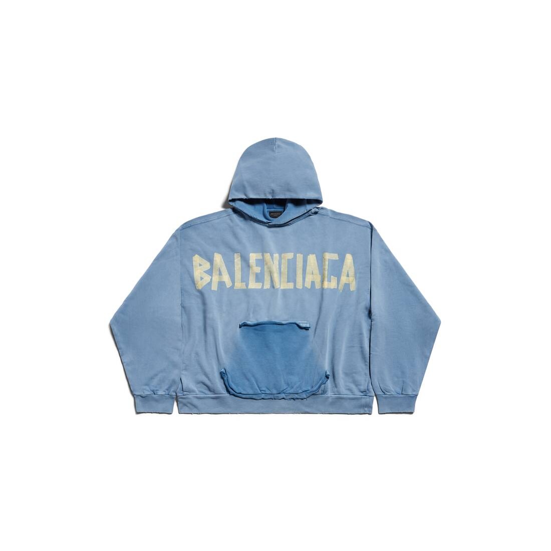 Tape Type Ripped Pocket Hoodie Large Fit in blue curly fleece PRODUCT DETAILS • Curly fleece • This item is unisex • Large fit • Hood without drawstring • Dropped shoulders • Ripped out pocket at front • 1 slash pocket on each side • Tape Type logo at front and back • Destroyed and washed-out effect • Made in Portugal • Hand wash • The model is wearing a size S Material: 100% cotton