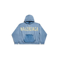 Men's Tape Type Ripped Pocket Hoodie Large Fit in Faded Blue