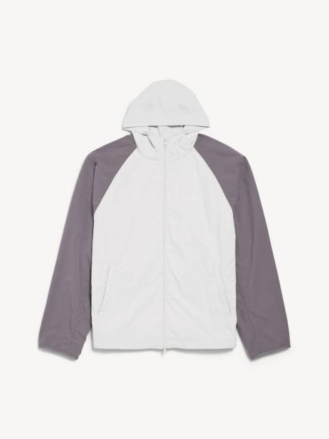 Technical Tracksuit Jacket in black technical polyamide PRODUCT DETAILS • Technical polyamide • Hooded design • High neck • Double-ended zip fastening • Long raglan sleeves • Contrasting piping • 2 zipped slash pockets • 2 inner vertical zipped pockets • Loop sports icon artwork embroidered on chest • Adjustable drawstring at hem • Elasticated cuffs • Made in Italy Main material: 100% polyamide