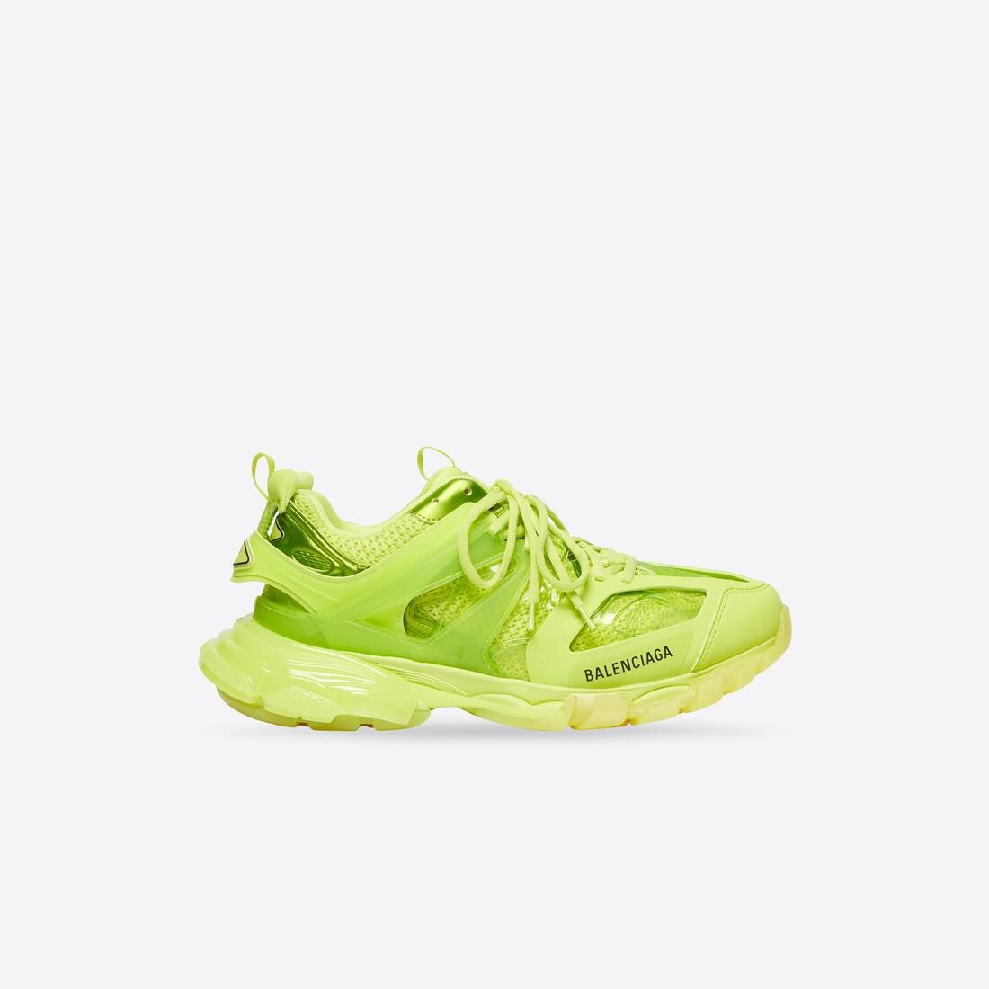 Track Sneaker Clear Sole in neon yellow mesh and nylon PRODUCT DETAILS • Leather free • Sneaker • Mesh and nylon • Clear sole • Written size at the edge of the toe • Track embossed at the back of the heel • BB embossed on front of the outsole • Printed logo on the exterior • Embossed logo on the tongue • Double laces knotted in a usual equipment way • Back pull-on tab and tongue pull-on tab • Dynamic sole design with an augmented back to propel feet forward • 1 additional pair of laces included • Made in China • Wipe with a soft cloth Material: 75% polyurethane, 21% polyester, 4% nylon