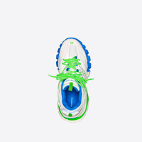 Track Sneaker in white, green and blue mesh and nylon PRODUCT DETAILS • 100% non leather sneaker • Mesh and nylon • Written size at the edge of the toe • Track embossed at the back of the heel • BB embossed on front of the outsole • Printed logo on the exterior • Embossed logo on the tongue • Double laces knotted in a usual equipment way • Back pull-on tab and tongue pull-on tab • Dynamic sole design with an augmented back to propel feet forward • 1 additional pair of laces included • Made in China • Wipe with a soft cloth Material: 60% polyurethane, 28% polyester, 12% nylon