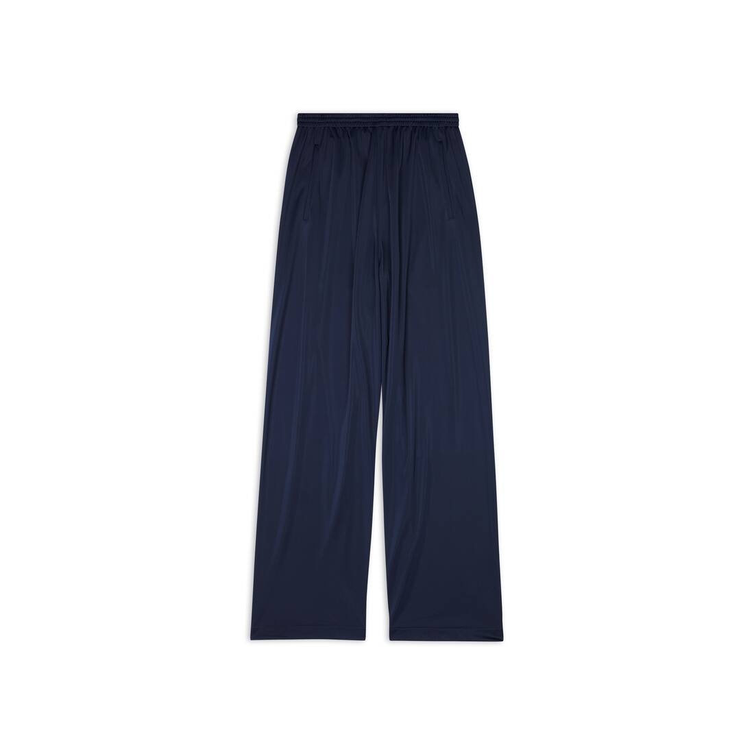 Tracksuit Trousers in dark blue jersey are from the look 26 of the Balenciaga's Spring 23 Collection, NYC Show. PRODUCT DETAILS • Jersey • Large fit • Mid-waist • Elasticated waistband • 2 zipped slash pockets at front • Made in Italy • Dry cleaning • Model is 185 cm / 6'1'' and is wearing a size 46 Material: 51% polyester, 49% triacetate
