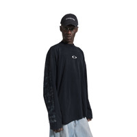 Transparent Tape Shifted Oversized Long Sleeve T-Shirt in faded black dry jersey PRODUCT DETAILS • Dry jersey • Crewneck • Long sleeves • Transparent Tape artwork on sleeves • Loop sports icon embroidered on front • Asymmetrical bottom • Made in Portugal Main material: 100% cotton
