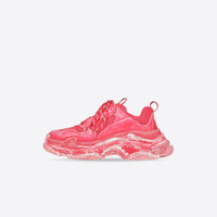 Triple S Faded Sneaker in red double foam and mesh PRODUCT DETAILS • 100% leather free Sneaker • Double foam and mesh Sneaker • Faded effect • Embroidered size at the edge of the toe • Embroidered logo on the side • Embossed logo in the back • Triple S rubber branding on the tongue • 2 laces loops including 1 functional • Athletic lacing system featuring 12 fabric eyelets • Bicolor laces recalling hiking boots’ laces • 1 additional pair of laces • Back pull-on tab and tongue pull-on tab • Made in China • Wipe with a soft and dry cloth Material: 48% polyurethane + 52% polyester