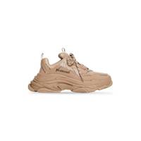 Triple S Sneaker Allover Logo in dark beige technical material PRODUCT DETAILS • Leather free • Sneaker • Technical material • Printed Balenciaga allover logo • Complex 3-layered outsole • Embroidered size at the edge of the toe • Embroidered logo on the side • Embossed logo in the back • Triple S rubber branding on the tongue • 2 laces loops including 1 functional • Athletic lacing system featuring 12 fabric eyelets • Bicolor laces recalling hiking boots’ laces • 1 additional pair of laces • Back pull-on tab and tongue pull-on tab • Made in China • Wipe with a soft and dry cloth Material: 95% polyurethane, 5% polyester