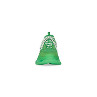 Triple S Sneaker Clear Sole in green double foam and mesh PRODUCT DETAILS • Leather free • Sneaker • Double foam and mesh • Complex 3-layered outsole, Clear Sole technology • Embroidered size at the edge of the toe • Embroidered logo on the side • Embossed logo in the back • Triple S rubber branding on the tongue • 2 laces loops including 1 functional • Athletic lacing system featuring 12 fabric eyelets • Bicolor laces recalling hiking boots’ laces • 1 additional pair of laces • Back pull-on tab and tongue pull-on tab • Made in China • Wipe with a soft and dry cloth Material: 52% polyester, 48% polyurethane