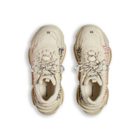 Triple S Sneaker in white, red and black DIY metal artwork printed cowskin PRODUCT DETAILS • Sneaker • DIY metal artwork printed cowskin • Worn-out effect • Complex 3-layered outsole • Embroidered size at the edge of the toe • Embossed logo in the back • DIY Metal artwork printed on each side • Triple S rubber branding on the tongue • 2 laces loops including 1 functional • Lacing system featuring 12 fabric eyelets • Bicolor laces recalling hiking boots’ laces • 1 additional pair of laces • Back and tongue pull-on tab • Made in China • Wipe with a soft and dry cloth Material: 100% cowskin