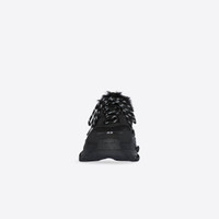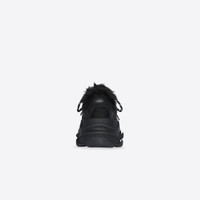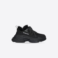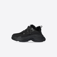 Triple S Sneaker Fake Fur in black double foam and mesh PRODUCT DETAILS • Leather free • Sneaker • Fake fur, double foam and mesh • Complex 3-layered outsole • Embroidered size at the edge of the toe • Embroidered logo on the side • Embossed logo in the back • Triple S rubber branding on the tongue • 2 laces loops including 1 functional • Athletic lacing system featuring 12 fabric eyelets • Bicolor laces recalling hiking boots’ laces • 1 additional pair of laces • Back pull-on tab and tongue pull-on tab • Made in China • Wipe with a soft and dry cloth Material: 48% polyurethane + 52% polyester